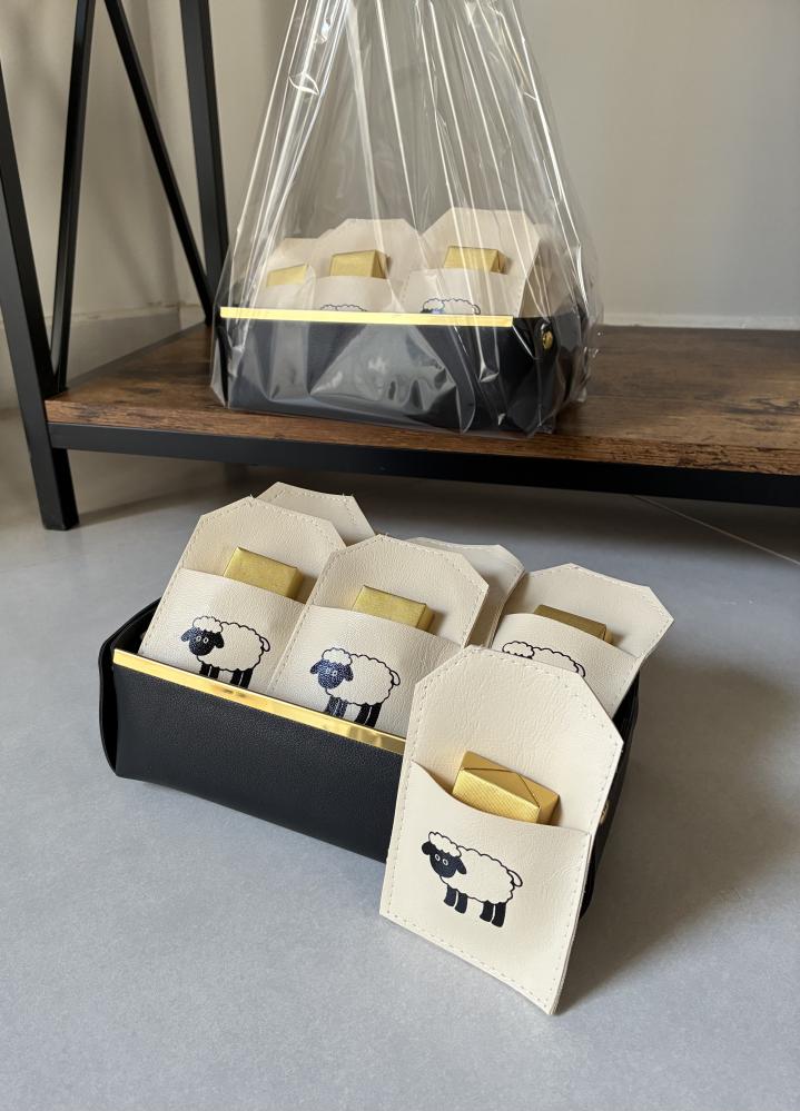 - تصميم المحفظة الجلدية الأنيق يضيف لمسة فخامة، ويجعل التوزيعة ملفتة وجذابة لجميع المناسبات والعائلات.