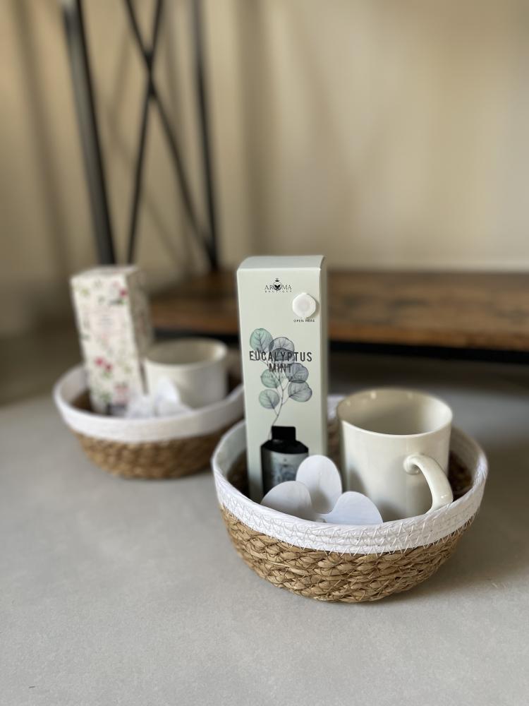 - يتميز شكل السله بإنه يدمج بين اللون الأبيض والبيج مما يعطيها شكل مميز وفخامة للهدية.