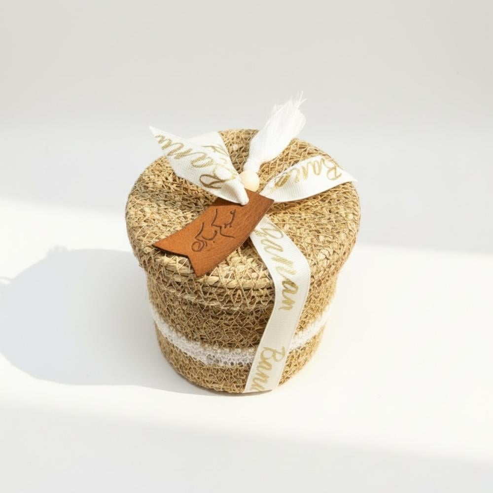 - سلة خوص أنيقة: مصممة بعناية لتكون عملية وجميلة، ومثالية لتقديم الهدايا في العيد.