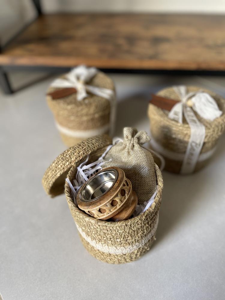 • سلة خوص أنيقة: مصممة بعناية لتكون عملية وجميلة، ومثالية لتقديم الهدايا في رمضان.