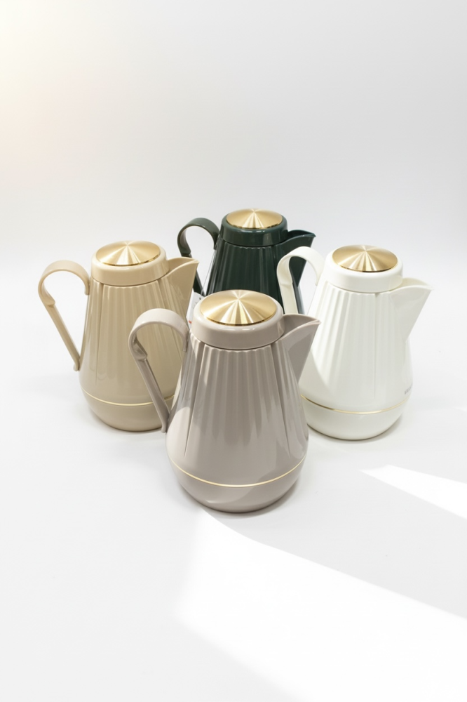 • ترمس بلون درجات البيج الراقية، مثالي لتقديم القهوة أو الشاي في أجواء روحانية دافئة.