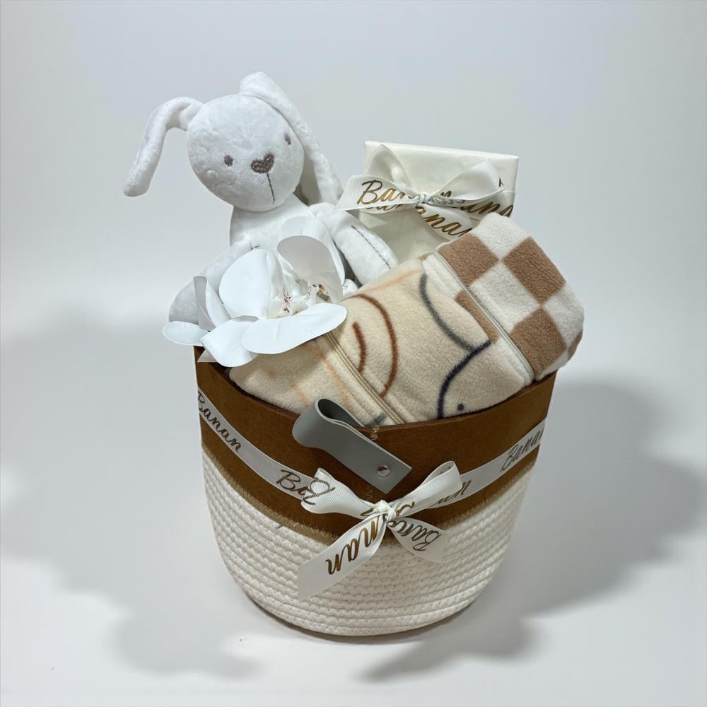 - يتوفر أرنب ناعم الملمس محشو ومميز ليُضفي لمسة من الحنان، ويُصبح رفيقا صغيرا للمولود منذ أيامه الأولى.