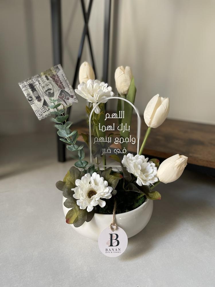 أضف لمسة من الجمال والرقي مع مزهرية ورد ابيض صناعي من متجر هدايا بنان، الخيار المثالي لتقديم هدية مميزة في أي مناسبة، بتصميم أنيق يشمل الكرت والكيس الفاخر، يمكن تخصيص النص المكتوب على الأكريلك ليناسب المناسبة بدقة، لذا اختر من بين مجموعة من الرسائل الجميلة لتجعل هديتك تعبيرًا فريد عن مشاعرك في كل مناسبة.